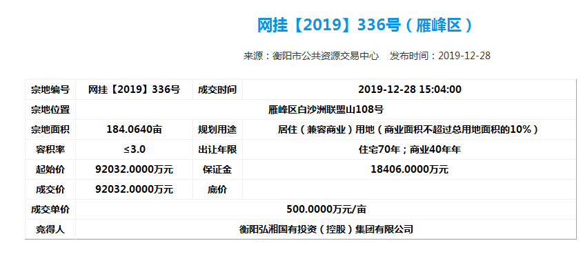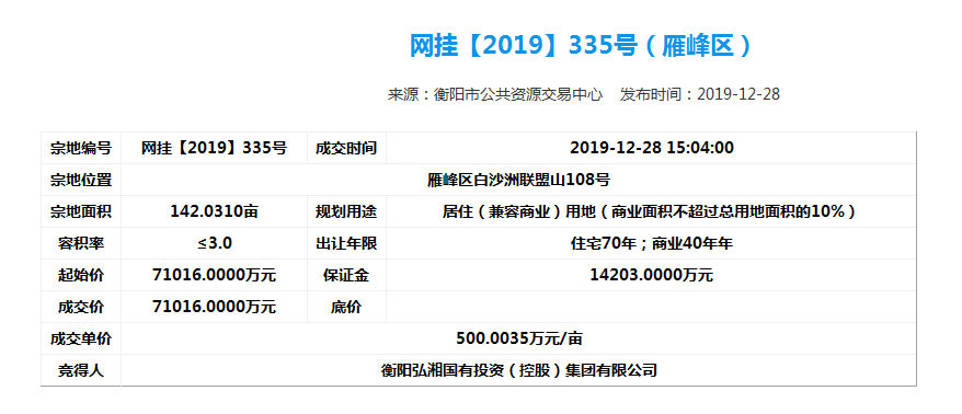 為了進一步做好市場化運行,弘湘國投以市場經(jīng)營為主體,向資本市場進軍,進一步做實做強國有資產(chǎn),增強自身活力。2019年12月28日下午,弘湘國投在市公共資源交易中心網(wǎng)站成功摘牌6宗共計523畝改制企業(yè)土地,摘牌總價超24億元,并于當日簽訂了《國有建設(shè)用地使用權(quán)公開出讓成交確認書》。2019年12月31日,弘湘國投與市自然資源和規(guī)劃局正式簽訂了《國有建設(shè)用地使用權(quán)出讓合同》。