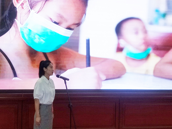 “這是一群無形而又特別的抗疫者,沒有請戰(zhàn)書,沒有紅手印,沒有被表彰,甚至連幾張抗疫的照片都沒有。但是他們的袋子里總懷揣著厚厚的清單,今天是658張”“ 新的路上,是團結(jié)一心、英勇無畏的抗疫精神,也是發(fā)展為上、民生為本的弘湘力量!”比賽現(xiàn)場,黃雅婷緊緊圍繞弘湘戰(zhàn)“疫”這一主題,講述了一個個發(fā)生在弘湘抗疫的感人故事。作為比賽第一位出場的她以真摯的情感、極富感染力的宣講方式以及自然樸實流暢的語言,將“第658份清單”的弘湘戰(zhàn)疫的故事聲情并茂地呈現(xiàn)在各位評委和觀眾面前,用真人、真事、真情表達(dá)弘湘人在抗疫戰(zhàn)斗中的不畏困難、勇于擔(dān)當(dāng),展現(xiàn)了弘湘集團全體黨員干部在疫情防控中團結(jié)一心,勇往直前的精神風(fēng)貌。
