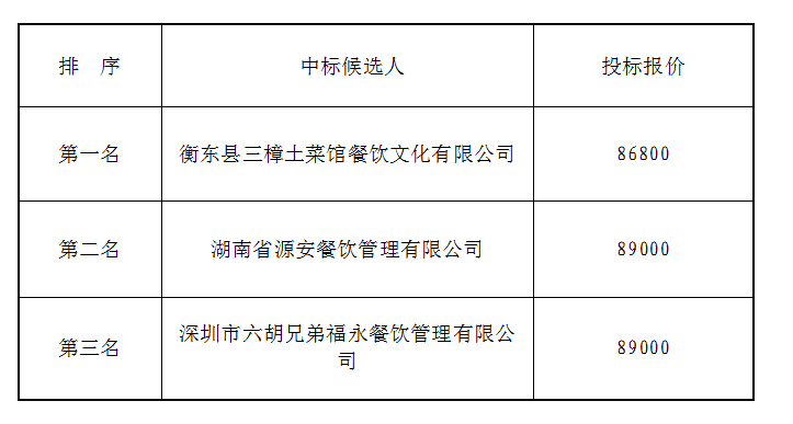 衡陽市衡府賓館有限公司(養(yǎng)正園)食堂勞務公開比選候選人公示