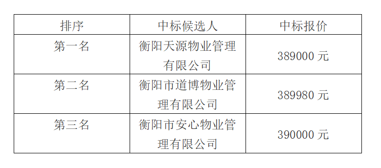 衡拖棚戶區(qū)改造(一期)安置小區(qū)前期物業(yè)管理公司中標(biāo)候選人公示