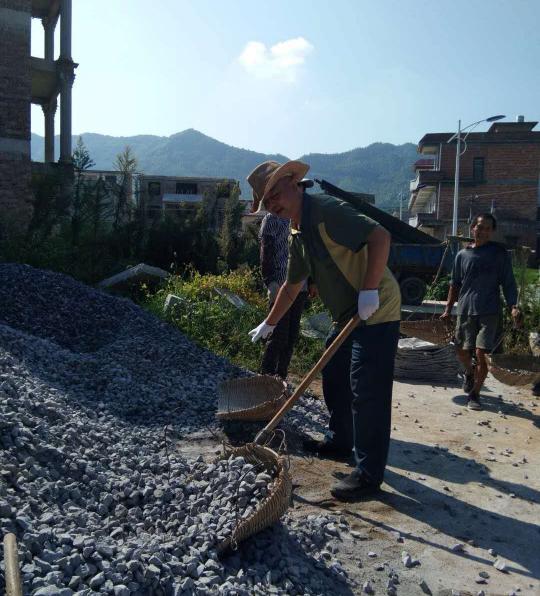 2018年8月20 日早晨8:30的關(guān)市寶新村譚海容家門口,已是一番熱鬧的勞動場面,水泥攪拌機(jī)歡快地運轉(zhuǎn)著,人們在夏日的朝陽下?lián)]汗如雨,有條不紊地對門口的地面進(jìn)行找平、水泥硬化,原來這是弘信公司的全體員工對貧困戶譚海容家的一次集體扶貧活動。他的老母親80多歲了,眼睛視線不好,家里因為貧困,屋里和門口的地面凹凸不平,為防止老人意外摔倒,大家集體策劃了此次扶貧活動。