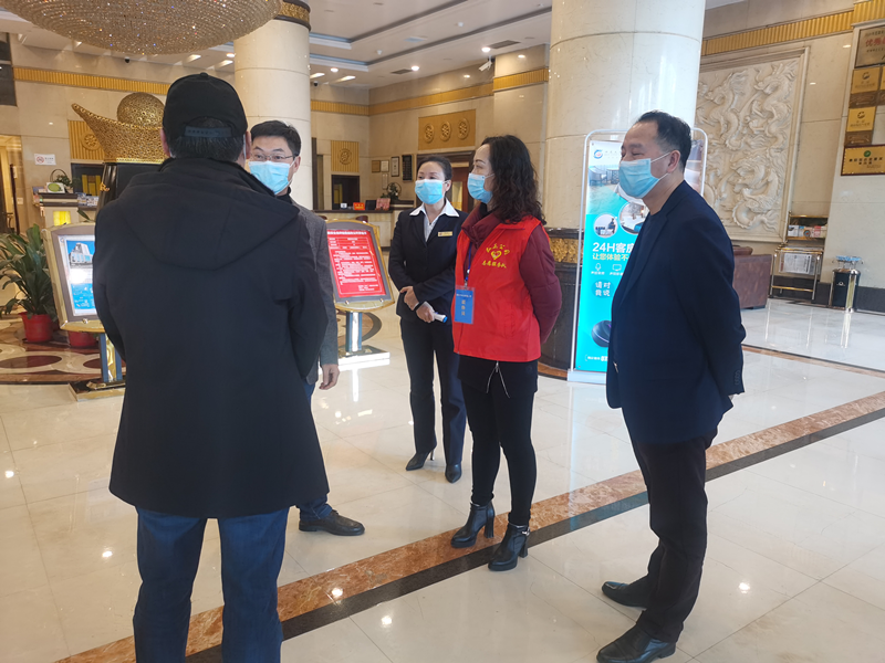 神龍大酒店是衡陽知名四星級酒店。目前,酒店關(guān)閉餐飲娛樂部門,僅留客房部繼續(xù)營業(yè)。為確保防疫復(fù)工順利開展,弘湘國投選派聯(lián)絡(luò)員進駐商業(yè)大廈,專門負責督導(dǎo)神龍大酒店疫情防控工作。陳新驥在與企業(yè)負責人和酒店負責人交談了解情況后,針對酒店人員流動性大、構(gòu)成復(fù)雜的特點,強調(diào):要重點督促酒店進出人員測量體溫、佩戴口罩、衛(wèi)生措施、員工食堂分餐、員工宿舍衛(wèi)生和日常消毒情況。聯(lián)絡(luò)員要每日報告商業(yè)大廈復(fù)工復(fù)產(chǎn)企業(yè)和防疫工作情況,要有紀律,要勇于擔當,為企業(yè)辦實事,解難事。我們既要打贏疫情防控戰(zhàn),也要幫助保護好衡陽本地知名企業(yè)。