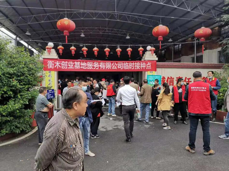 為協(xié)助屬地政府集中做好新冠疫苗接種工作,5月25日至5月27日,衡木創(chuàng)業(yè)基地服務有限公司黨支部在園區(qū)設立新冠疫苗臨時接種點,前來接種新冠疫苗的居民群眾佩戴口罩,有序排隊等待接種。
