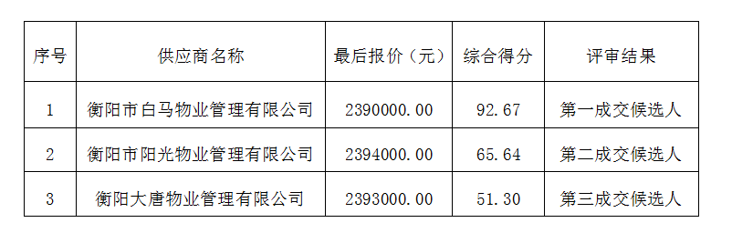 成交供應(yīng)商名稱:衡陽市白馬物業(yè)管理有限公司