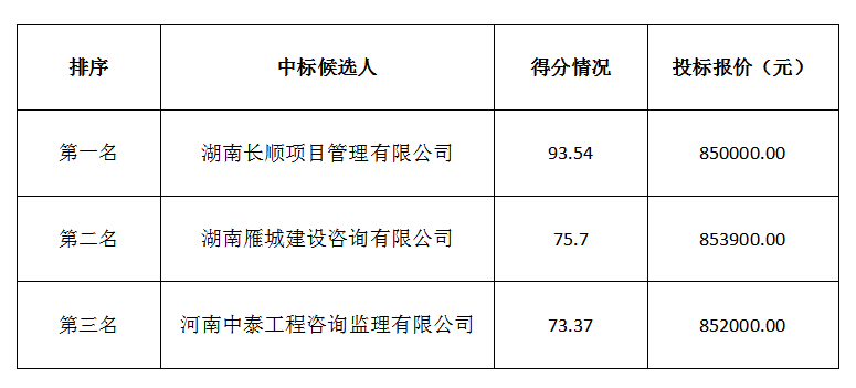 公示期2023年1月28日至2023年1月30日,公示期滿對以上中標(biāo)候選人若無異議,招標(biāo)人將確定以上中標(biāo)候選人中的第一名為該項(xiàng)目最終中標(biāo)人。