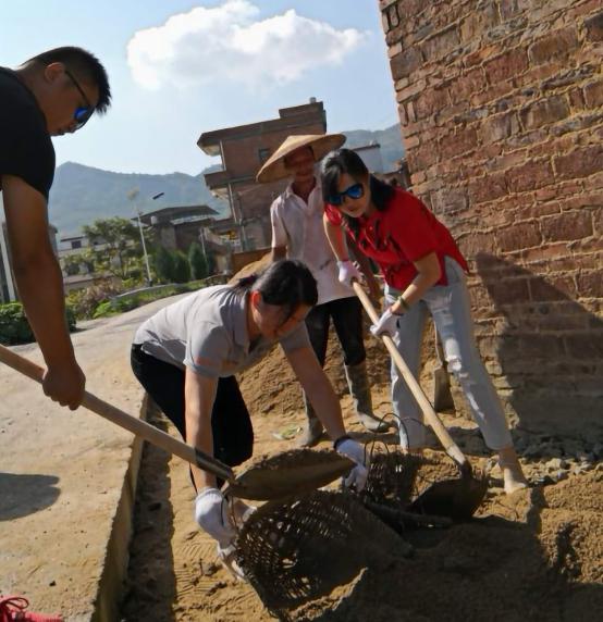 勞動的人群中有幾個熟悉的身影特別打眼,頭戴一頂草帽的董事長王建華,全然沒有城里人對農(nóng)事的陌生,只見他熟練地挑起一擔(dān)卵石,扁擔(dān)都被這一挑沉重的卵石壓彎了腰,但他健步如飛、體態(tài)輕盈;身穿紅色T恤衫的李晶副總,全然不顧已經(jīng)疼了幾個月的手臂,抬起一筐河沙就走;李詠琴副總也不示弱,將剛剛還暈車的不適拋到腦后,毫不顧忌炎炎烈日對肌膚的傷害,在烈日下?lián)]鏟、運砂......